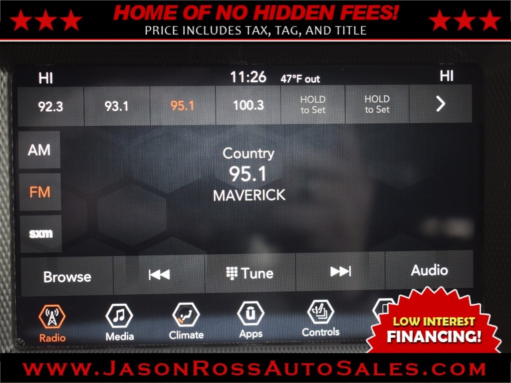Jason Ross Auto Sales attempts to provide accurate information on the automobile listed above. The actual equipment may vary. Please confirm all vehicle options, accessories and prices with a sales associate to assure accuracy. This information is provided without representations or warranties of any kind, either expressed or implied. Prices do not include additional fees such as government fees and taxes, title and registration fees, finance charges, dealer document preparation fees, and emission testing